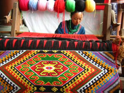 生存現(xiàn)狀 1957年土家族織花能手精心制作的“開發(fā)山區(qū)”圖案的“西蘭卡普”,融會了傳統(tǒng)技藝,傾注了對黨、對新生活的熱愛,被選人中國工藝美術(shù)品展銷會,到東歐各國展出,獲得各國人民和專家的贊賞。特別是十一屆三中全會以來,土家族青少年織花能手在繼承傳統(tǒng)的基礎(chǔ)上,新創(chuàng)了《韶山景》、《北京八景》、《擺手舞》、《熊貓》、《烏云花》、《蝴蝶菊花》、《獅子滾繡球》、《土王五顆印》、《張家界風光》、《七十二鉤》、《壽星花》等十多種作品,為民族藝術(shù)的繁榮增添了嶄新的內(nèi)容。
