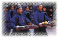 指著圓符,不久,蒙面者便神魂入定;似有神附體,慢慢地全身抖動(dòng)起來(lái),手舞足蹈,這就是已“進(jìn)入陰間”。據(jù)傳過(guò)陰之人,雖蒙頭蓋面,也能辨別方向,隨法師的指使行事,陰間之事能有問(wèn)必答,人們所要了解之事,也都從他們那里得到答復(fù),并可以探求禳解之法。法師用法術(shù)指使他們?nèi)プ龈鳂邮虑?。到一定時(shí)間,法師用咒語(yǔ)報(bào)他們招回,他們?cè)诜◣煹闹甘鞠?,陸續(xù)返回陽(yáng)世清醒過(guò)來(lái)。若有個(gè)別不能返回,法師則加倍對(duì)他們施法,用刀指向他,并念咒畫符,強(qiáng)令返回。過(guò)陰之人蘇醒后,法師揭開(kāi)頭蓋,這時(shí)個(gè)個(gè)面色慘白,目光遲鈍,如害一場(chǎng)大病。法師再施以復(fù)原之術(shù),使之慢慢復(fù)原。他們復(fù)原后,完全忘記陰間的事情。