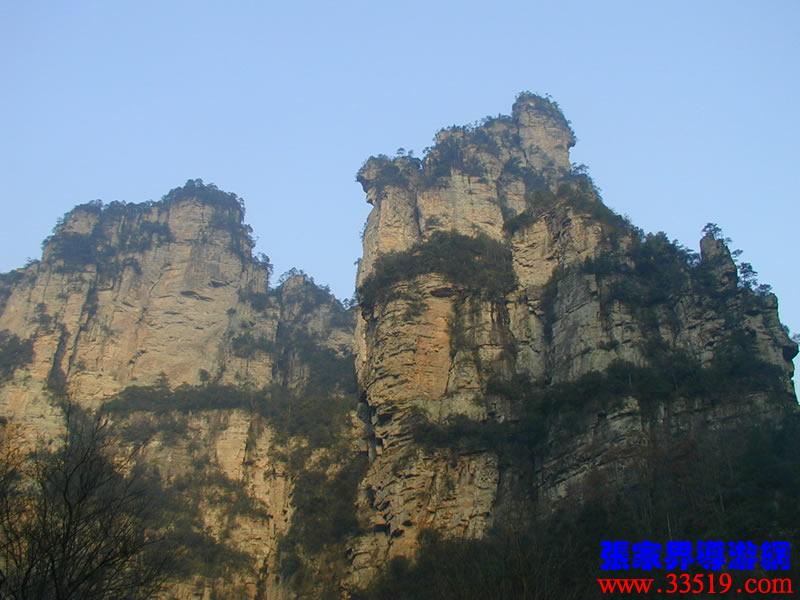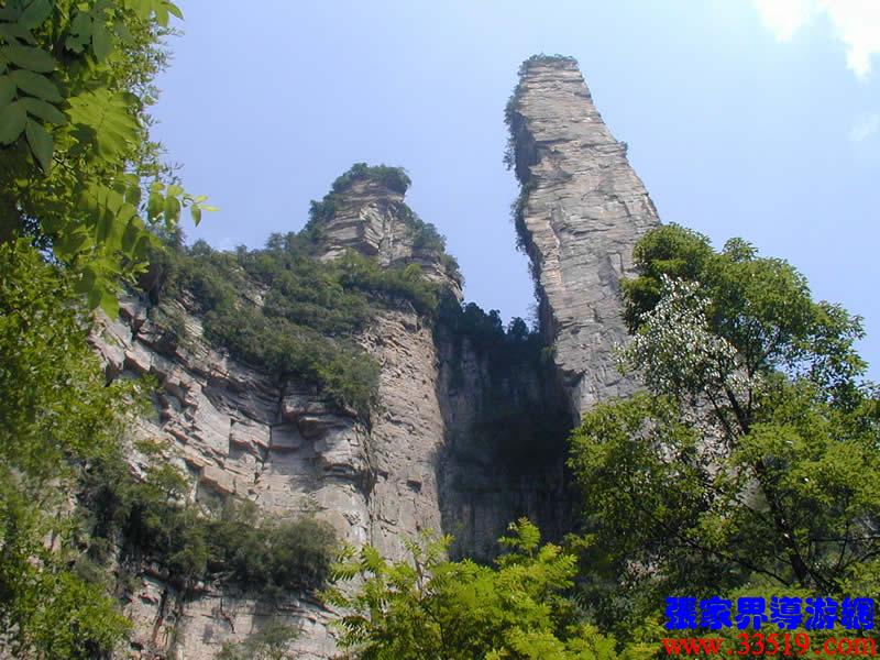 (花果山、水簾洞)孫悟空的花果山水簾洞到了。并不是張家界人過(guò)于牽強(qiáng),胡亂把西游記的事兒往這兒湊,實(shí)在是巧合,《西游記》劇組的導(dǎo)游楊潔及唐僧、豬八戒、孫猴子、沙和尚等飾演者,一見到這地方就十分肯定地說(shuō):外景地選遍全國(guó),只有張家界才真正是《西游記》筆下的神仙妖魔世界。大家順著我的指向往前看,左前方是帶著僧帽,披著袈裟,嘴中念念有詞的唐僧,緊跟在他后面的那座黑乎乎的石峰當(dāng)然就是沙和尚了;神通廣大的孫猴子半蹲在唐僧后側(cè)手搭涼篷,正在觀察敵情呢;豬八戒哪去了?不用說(shuō),不是貪吃貪睡,就是偷偷找小女子搭訕去了,花心去了。