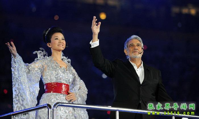 2008年8月24日晚8時,奧運會閉幕式在“鳥巢”舉行。備受期待的我國著名歌唱家宋祖英和世界三大男高音之一的著名男高音歌唱家多明戈的合唱《愛的火焰》在鳥巢響起,多明戈給予了宋祖英高度評價——“歌聲甜美,非常有藝術(shù)性。人長得非常非常漂亮,和她同臺演唱是一件非常非常高興的事情……”。在舞臺中央,宋祖英一襲銀光禮服成為了鳥巢場內(nèi)的亮點,紅色的腰帶更為這套禮服平添了幾分中國韻味。多明戈白色的襯衣搭配著黑色的西裝顯得優(yōu)雅而莊重.