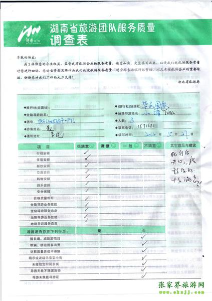 - 2011年10月26日張小姐一行18人旅游質(zhì)量反饋 [10482]