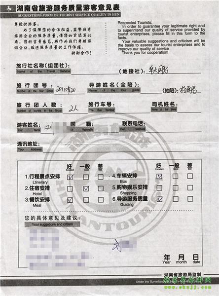 2011年5月20日劉先生一行2人旅游質量反饋
