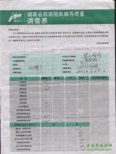 2011年6月2日劉先生一行4人旅游質(zhì)量反饋