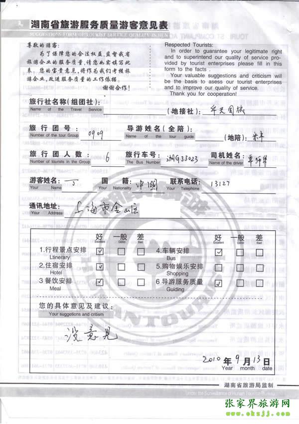 - 游客夏先生為表揚導游李姣姣寫來表揚信致我張家界... [14811]