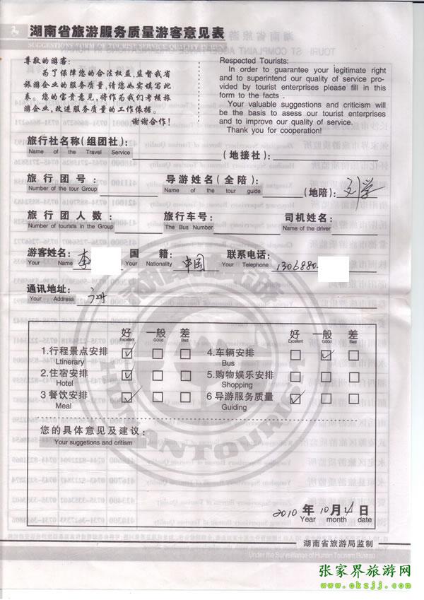 - 2011年10月26日張小姐一行18人旅游質(zhì)量反饋 [10482]