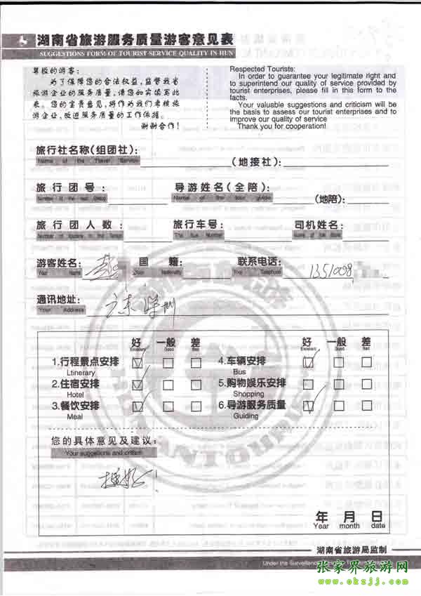 - 游客夏先生為表揚導(dǎo)游李姣姣寫來表揚信致我張家界... [14811]