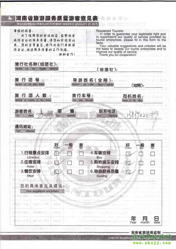 2010年9月25日張先生旅游質量反饋