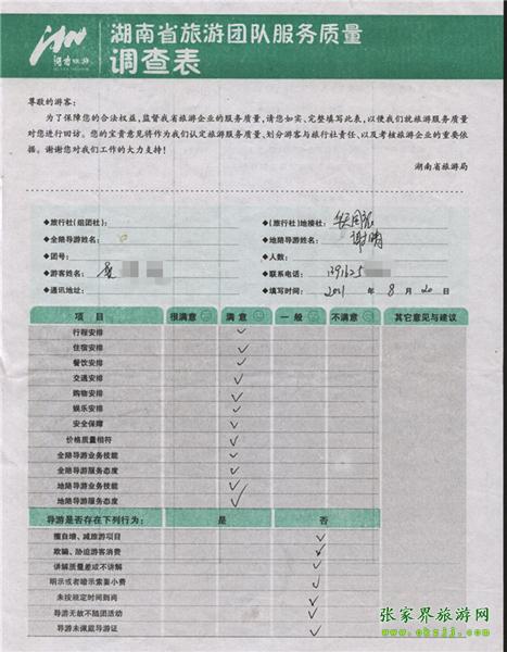 - 6月25日福建邵先生一行12人質(zhì)量反饋單