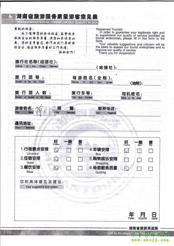 - 6月25日福建邵先生一行12人質(zhì)量反饋單