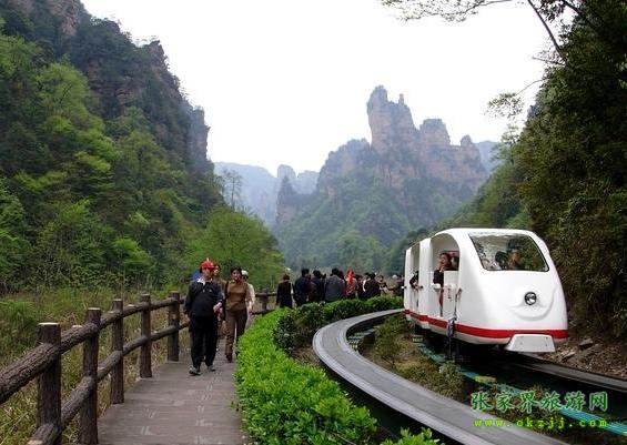在十里畫廊盡頭。這里怪石嶙峋,林木蔥籠,常有三五成群成百上千只猴子在此會集,故稱猴子坡。游人至此,或樹叢之中,或山間古道,常見群猴在懸崖絕壁上攀援嬉戲,有的盲目在藤蔓上攀跳,有的獨(dú)坐巖石抓耳搔腮。惹得游人眉開眼笑,興味無窮。 從南天門向?qū)γ嫱ィ梢娙菹魇?,形如美女,婷婷玉立,故?ldquo;三女峰”。三女峰尤以第三峰奇妙,于石峰胸部有一直徑約1米乳眼, 由孔中可窺山后天光,既像高懸在石壁上的明鏡,又像少女佩帶著一枚晶瑩透明的玉飾。 過南天門繼續(xù)登山約200注,有一岔道口,叫月亮埡, 往右便是天子山石家檐景區(qū),向右斜上則通天臺。天臺海拔1020米,有東西兩個觀景臺。東臺為一懸空巨石,四周雜樹叢生,古松倒掛,是觀日出的理想之所。西臺俯視西海最妙,但見幽深莫測的峽谷中,千峰聳立,戴翠披綠,秀麗的景色盡覽眼底。 十里畫廊觀光小火車票價:單程30元/ 人,雙程40元/人。優(yōu)惠門票價格單、雙程由現(xiàn)行每人次14元和19元調(diào)整為18元和24元。 優(yōu)惠政策規(guī)定:根據(jù)有關(guān)文件規(guī)定,十里畫廊觀光電車門票價格對身高不足1.2米的兒童實(shí)行免費(fèi);對身高1.2米至1.5米的未成年人實(shí)行優(yōu)惠;對24歲以下學(xué)生憑學(xué)生證享受優(yōu)惠;符合《殘疾人實(shí)用評定標(biāo)準(zhǔn)》的殘疾人、60周歲以上老人、現(xiàn)役軍人、烈士直系家屬、持有民政部門頒發(fā)的《城鄉(xiāng)居民最低生活保障金領(lǐng)取證》的人員憑有效證件享受優(yōu)惠;此外可在特定日期對特定群體(如教師節(jié)對教師、建軍節(jié)對軍人等)實(shí)行減免優(yōu)惠。 湖南唯一一家全國百強(qiáng)國際旅行社、湖南五星級旅行社:華天國際旅行社 品牌卓著,信譽(yù)度高,是游客理想選擇接待單位。