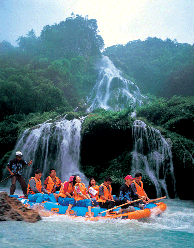 到了大門口,彭導幫我們?nèi)ベI了門票,248元/人,共花去496元。彭導先前給我們預算是,按最經(jīng)濟的帳目來算的,470元/人(包括進山大門票,但不包括索道、天梯、酒水等),他說出門在外,能節(jié)約點就節(jié)約點。當然他也知道我們可能會超出這個標準,如果有必要,到時可以再自己花費。買了門票后,我給了他500塊,算是這幾天的費用,他說,不是說好是每人470的嗎,你應該是給我444塊。我說,上次謝謝您的關(guān)心,這次不能讓你太吃虧了。彭導說,那今天晚上我叫店家給你們加個菜,呵呵呵。 下午,我們玩了森林公園中的黃石寨和金鞭溪??戳颂鞎鴮毾?、點將臺、南天柱、摘星臺、六奇閣,五指峰、金鞭溪、金鞭巖、文星巖、紫草潭、千里相會等,彭導果然是彭導,有著二十年的導游經(jīng)驗的他就是不同凡響啊,個個景點都是如數(shù)家珍,說得是頭頭是道。(據(jù)網(wǎng)上說,有些導游是只帶路不講解,讓人只是看看表面,而無法去領略張家界那些精美絕倫的凄美傳說。我個人認為張家界的傳說也是應該值得每一個游人去了解,去領略的,如果你來張家界沒有聽到這些傳說的話,那一是你的導游的水平問題,二是你的一個很大的遺憾,你來張家界的經(jīng)歷是不完美的),什么龍蝦花的來歷,金鞭巖的前身,秦始皇和孟姜女與張家界的關(guān)系。晚上乘百龍電梯上袁家界(張家界的核心)一家旅館住宿。晚餐時,一葷一素一湯。我們吃著吃著,老板笑咪咪的搬上一鍋火鍋,當?shù)氐耐岭u火鍋。我們很詫異,我說,我們沒有點這個菜啊!老板,你是不是弄錯了?老板說,這是你們彭導叫我特地做的。我突然明白了,一定是彭導是為我多給的那50多塊錢了。由于長途奔波,加上下午又走了很多路,晚上洗了一個澡就睡下了。山里的氣溫很低,在這全國都如火爐時,張家界的晚上卻要蓋很厚的被子,真是一塊寶地啊。 第二天早上,我們參觀了袁家界的風景,其中最有名的當然數(shù)天下第一橋,這是由兩座巖石山的山頂自然生長在一起,非人所能為也。天下第一橋的稱號當之無愧啊。當然在袁家界,后花園也是不能不看的。張家界號稱“峰三千,水八百”,在這里你就能明顯的感覺到這句話的前半句是那么的實在??赐陱埣医绲暮诵脑医纾覀兂塑嚨搅?a class="insidelink" href="http://www.logpdf.com/scenic/zjjjq/1529295057.html" title="天子山">天子山(張家界景區(qū)內(nèi)的最高的地方)。玩了賀龍公園、御筆峰、仙女散花、西海、石船出海、仙人橋、天子廟、十里畫廊、一步難行。不巧的是,那天山上下了一點陣雨,雨后一條彩虹掛在天上,更重要的是山上起了一點霧,使整座山都籠罩在霧中,若隱若現(xiàn),看上去就象是在云海中,好象老天特地配合我們似的,難得一見的西海等正好被我們趕上了。彭導告訴我們,這樣的機會是很難得的,可能是張家界為了感謝我的再次到來,給了我一個特別的禮物吧。我大笑。晚上趕到昨天住的地方去住宿。不提。 第三天我們玩了烏龍寨、三道鬼門關(guān)、天波府、一步登天、空中走廊等。主要是在楊家界的景區(qū)范圍內(nèi)。本來是第三天下午要去鳳凰的,但是考慮到我和女友小嵐好容易來張家界一次,盡量將張家界的能玩的地方去玩一下。我也曾聽說張家界不僅峰三千,水八百,同時天然溶洞也是非常不錯的,據(jù)說其中一個溶洞為一根鐘乳石投保了1個還是2個億,(不怎么記得了,呵呵。)而且在張家界的宣傳資料上還看到了有漂流,打水仗等非常刺激的項目。我于是問一下彭導,能否幫我們聯(lián)系一下,彭導很爽快的答應了,他幫我們聯(lián)系了九天洞和茅巖河的公司。在彭導的上下打通下,本來是315元/人的行價,硬是給用278元/人的價格給拿下了。當搞定這些時,已經(jīng)外面是天黑一片了(彭導家就在楊家界)彭導說他想回家看看,明天我們會和一群人去看洞和漂流,他就不陪我們?nèi)チ?,明天下午他會在張家界市區(qū)去接我們,到時會有車送我們?nèi)ナ袃?nèi)。然后他會送我們上去鳳凰有車,并幫我們?nèi)ヂ?lián)系鳳凰的朋友來招待我們。 第四天,清晨我們便踏上了汽車去看洞漂流。號稱亞洲第一大洞的九天洞果然是名不虛傳,我們把它現(xiàn)在開發(fā)的部分粗略的走了一下,就花了我們近月4個小時,洞中鐘乳石遍地,在五彩斑闌的燈光下,顯得晶瑩剔透,閃閃發(fā)光,讓人感覺到是到了水晶宮一般,地下還有陰河,遠處通知海(據(jù)說)。對了,洞中溫度很低,常年在10多度。讓人在其中感覺到一陣陣寒意。故想進去的朋友記得多穿點衣服,以免著涼,切記。我們當時就是吃了很大的虧,從洞中出來時,小嵐就在點喀漱。下午來到茅巖河漂流。上船前看到有人賣水瓢,心中不免奇怪。雖說,張家界金鞭溪的水可以喝,但也不是每一條河的水都能喝啊?于是上前去問,一打聽才知道,這瓢不是用來舀水喝的,而是用來打水仗的。本來因為小嵐有點小感冒,我們打算保持中立,但一看到各位船友們個個磨拳擦掌,人手一把瓢或者水槍(這是當?shù)厝擞弥褡幼龅囊环N土水槍),還且對我們是虎視眈眈,我想我參加是不成了。于是我們也花了幾塊錢買了兩把。船開動后,大家開始時還是比較興奮,不時用瓢來劃一下船,但是沒多久,大家就開始尋找新的開心方式了,于是大家都開始蠢蠢欲動了,大家也都不客氣,不管別人是否作好應戰(zhàn)準備,反正是先下手為強,其中一條船首先開火,于是