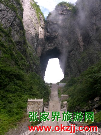 每一個景點都有著自己的特色,天門山的特色則都融會在天門里。天門山是典型的喀斯特地貌,山上有十六峰十六,天門就是典型的代表,天門山也因其而得名。天門海拔1300多米,遠觀如一道明鏡高懸于蔚蔚天幕之上,一邊是地,一邊是天,盡顯玄妙。天門自古就成為了人們祈福許愿的勝地,同時特殊的地理條件也激發(fā)了無數(shù)人的挑戰(zhàn)欲望。從1999年的飛機穿越,到2006年俄羅斯空軍揮淚離開,再到 2007年法國蜘蛛人徒手挑戰(zhàn),天門在它自身不凡的基礎上,成就了一個又一個更加偉大的傳奇的誕生!